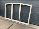 Net hardhouten raamkozijn bestaande uit drie vaste ramen. Leuke aanvulling voor uw huis met het ovale ontwerp van het raamkozijn.